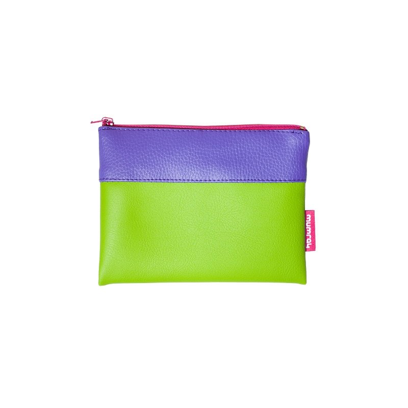 Kapsička z koženky zapínaná na zip se saténovou podšívkou (v tyrkysové, zářivě zelené, tmavě růžové, fialové nebo oranžové barvě).