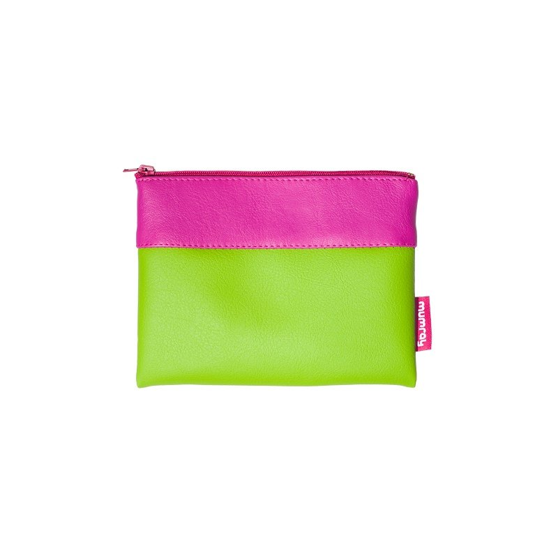 Kapsička z koženky zapínaná na zip se saténovou podšívkou (v tyrkysové, zářivě zelené, tmavě růžové, fialové nebo oranžové barvě).