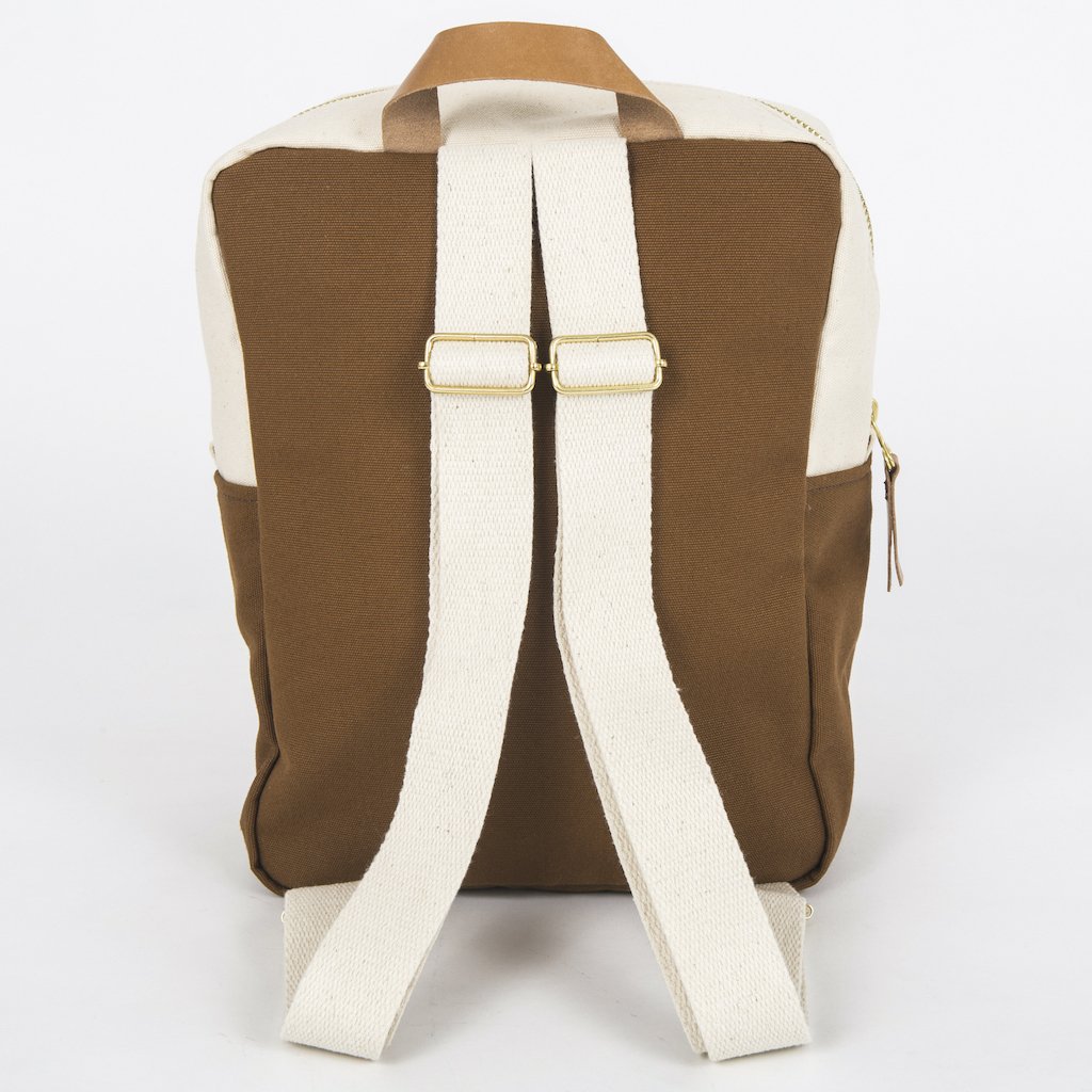 Dětský batůžek z bavlněného impregnovaného plátna české výroby. Detaily jsou z kůže.