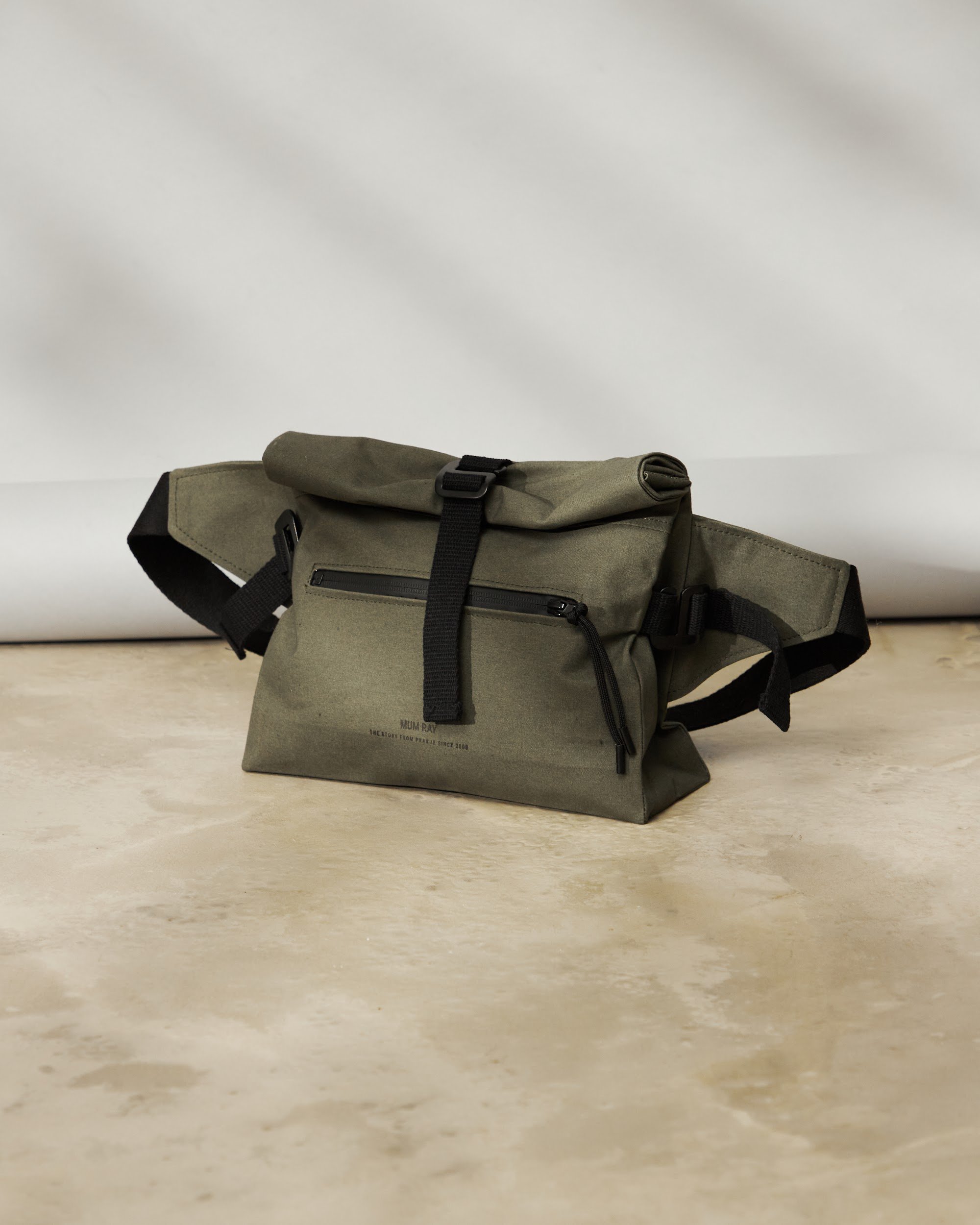 Unisex crossbody bag s nastavitelnou výškou a hloubkou pomocí kovových spon a popruhu.