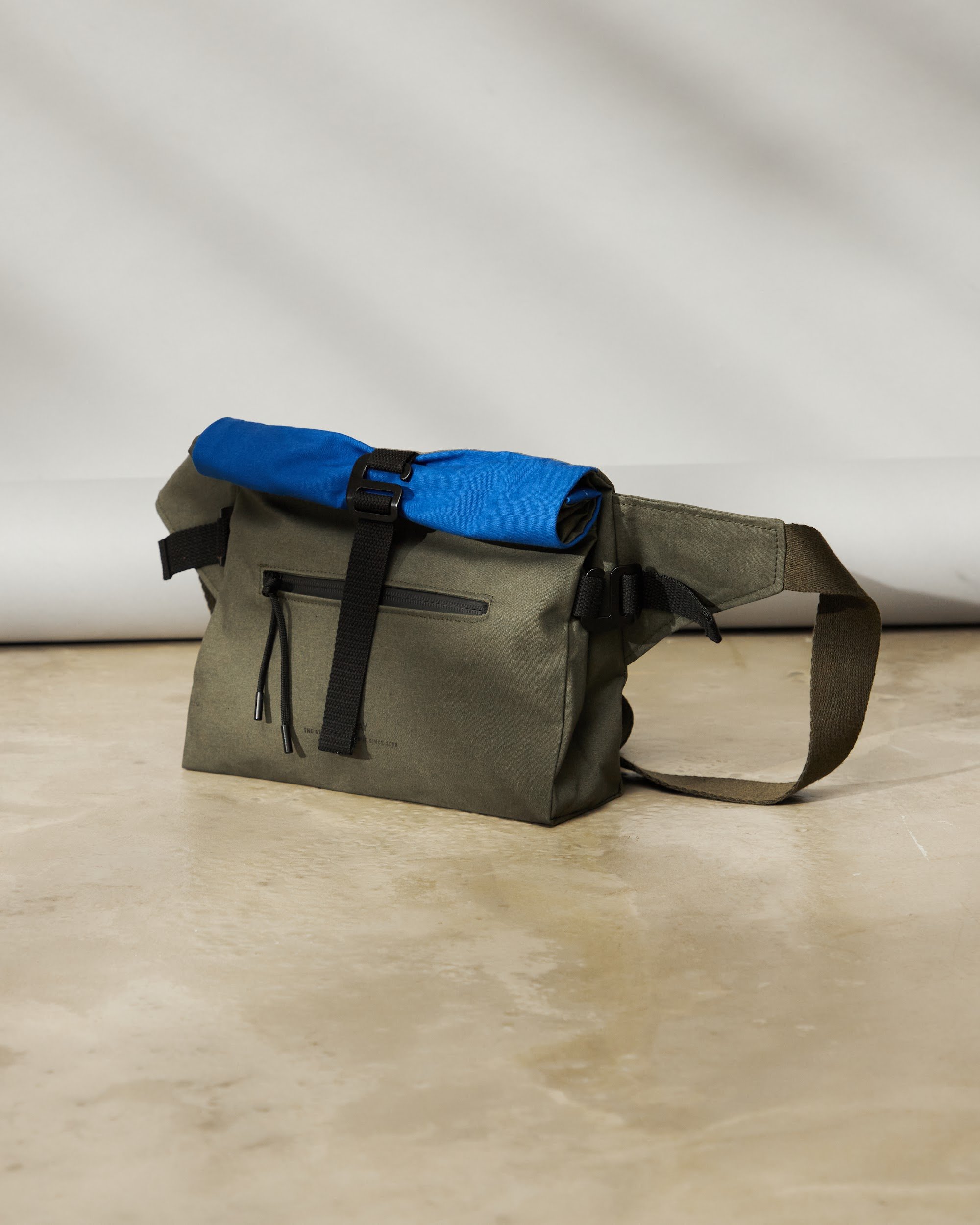 Unisex crossbody bag s nastavitelnou výškou a hloubkou pomocí kovových spon a popruhu.
