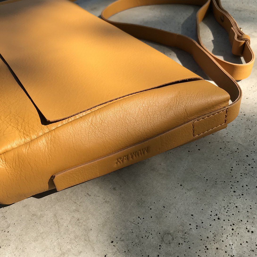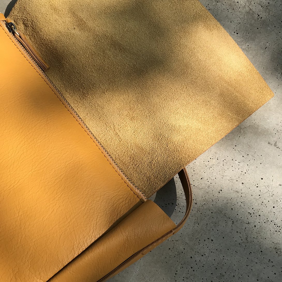Pod klopou je uzavíratelná na mosazný zip, díky kterému s ní můžete manipulovat a nebát se, že se z ní něco vytratí. Dno je vyztužené. Naše logo je vyraženo na boční straně na popruhu.