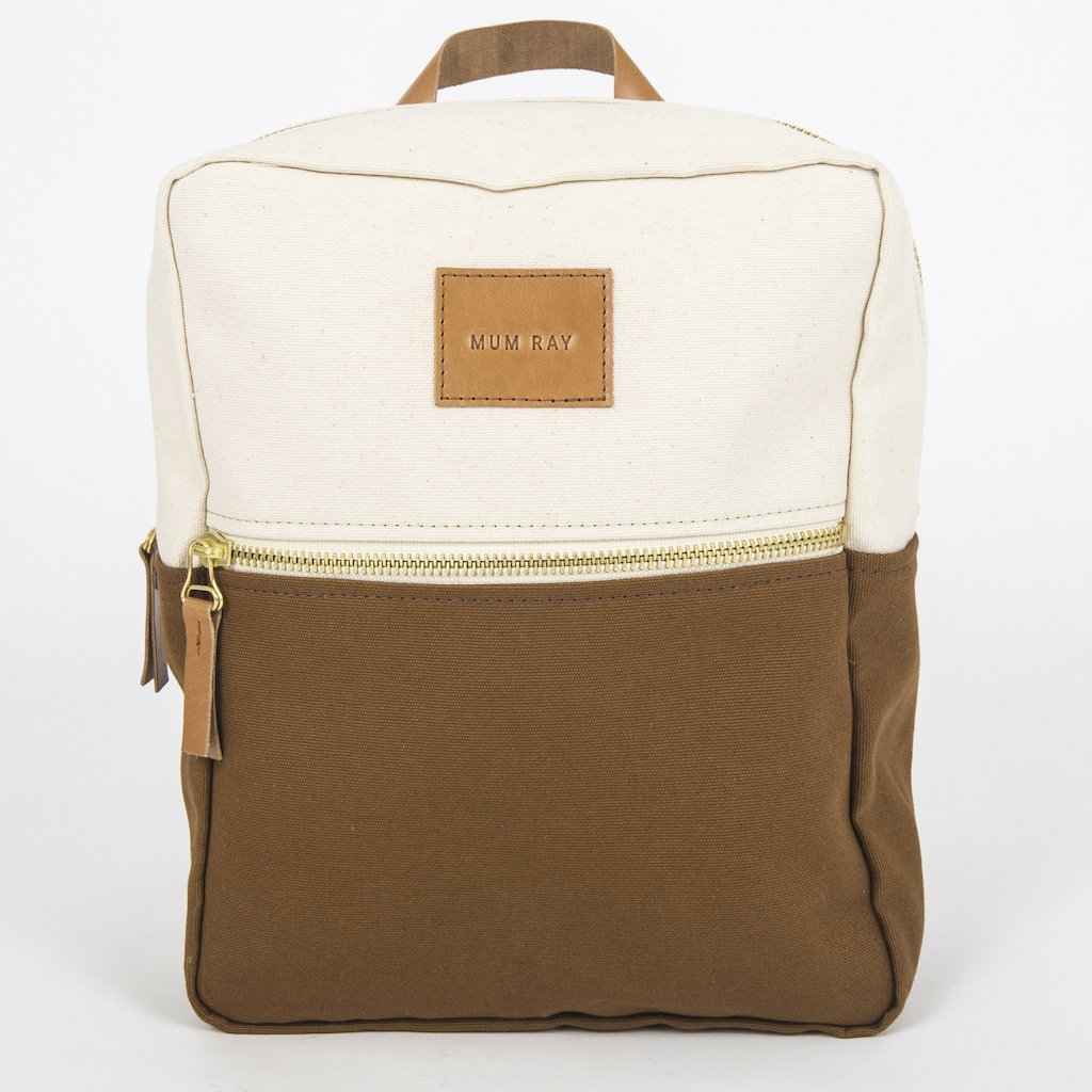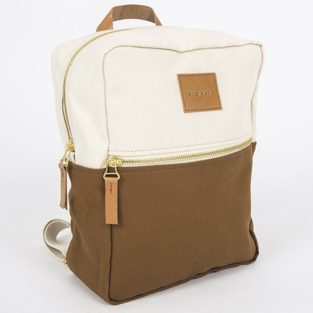 Dětský batůžek z bavlněného impregnovaného plátna české výroby. Detaily jsou z kůže.