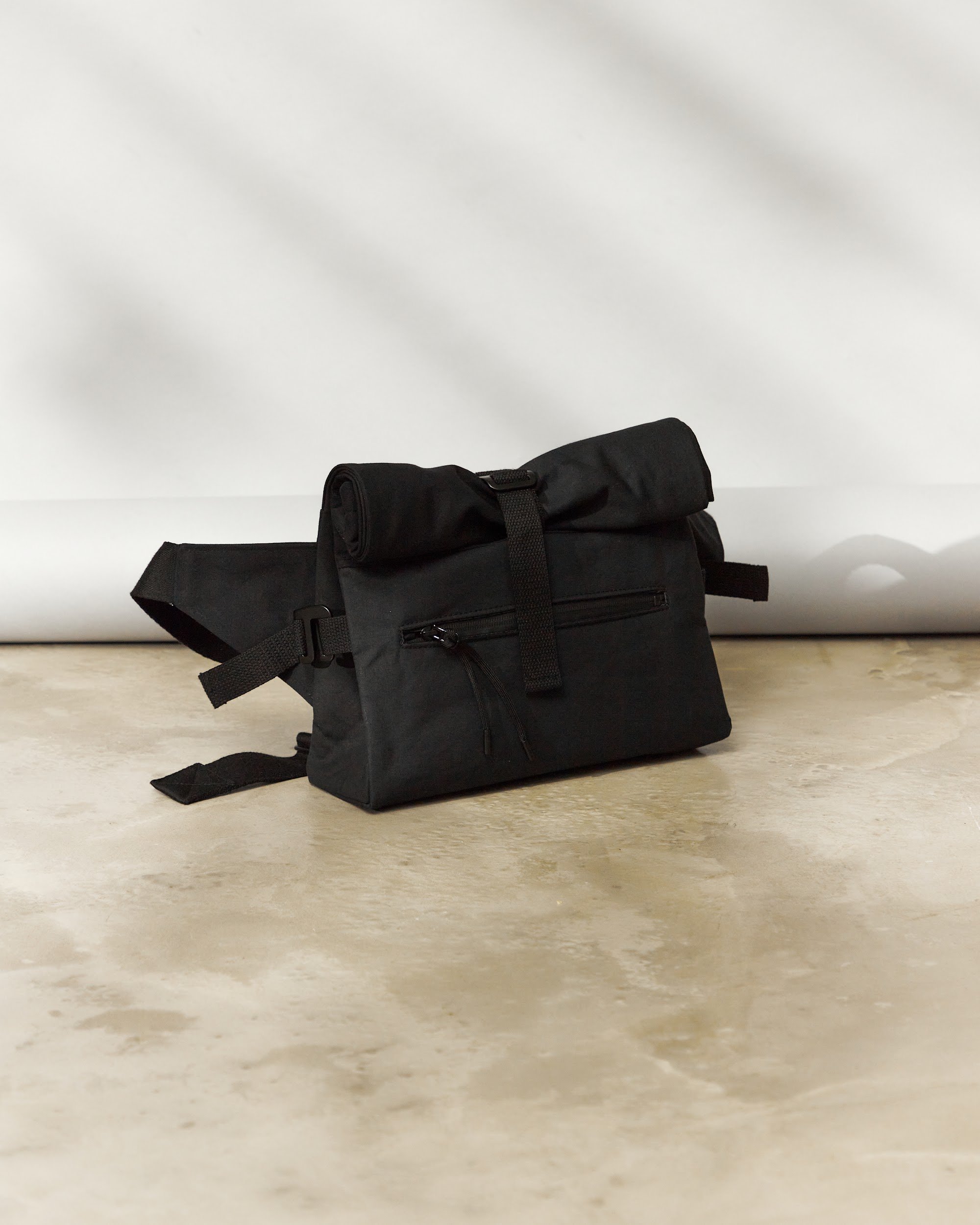 Unisex crossbody bag s nastavitelnou výškou a hloubkou pomocí kovových spon a popruhu.