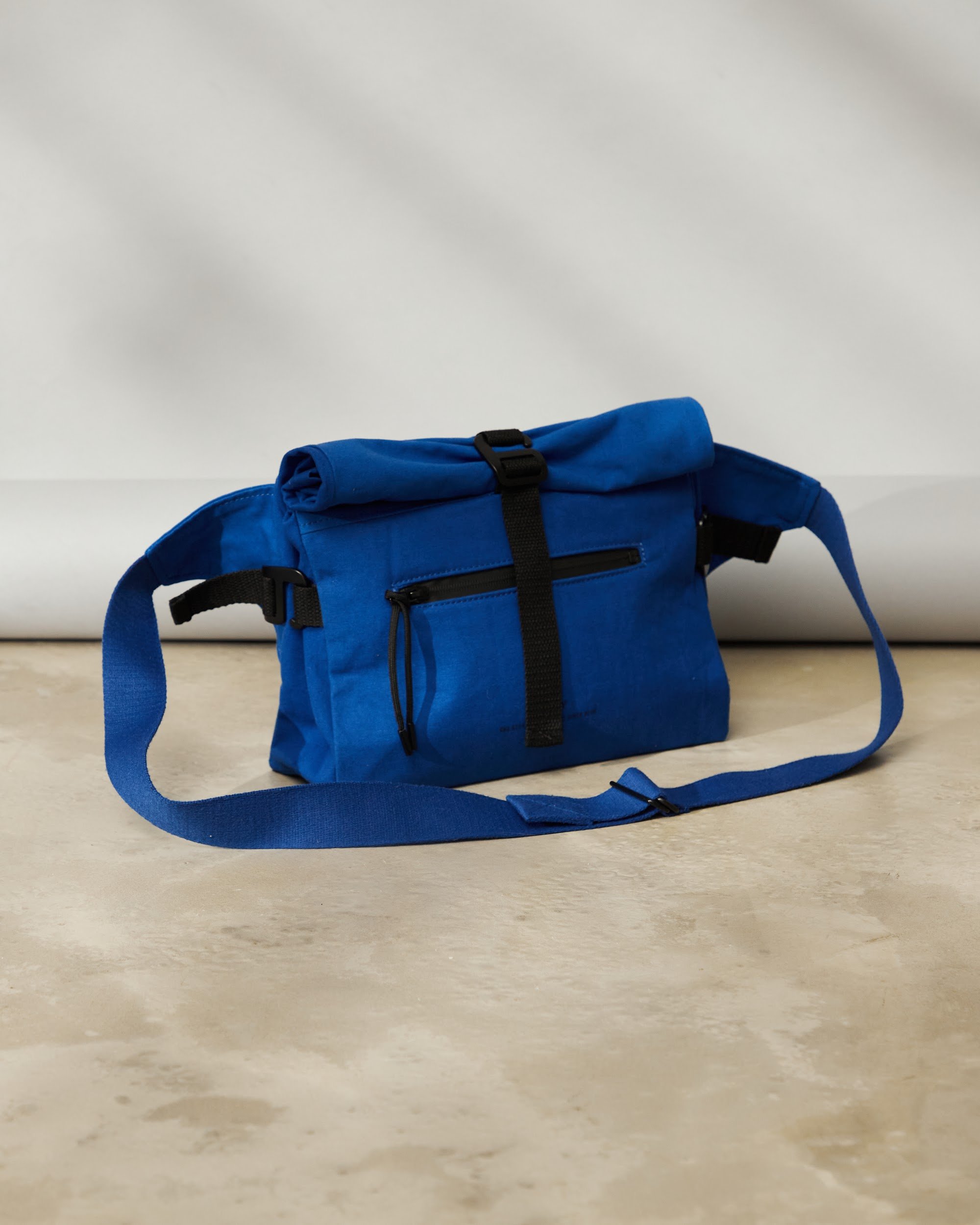 Unisex crossbody bag s nastavitelnou výškou a hloubkou pomocí kovových spon a popruhu.